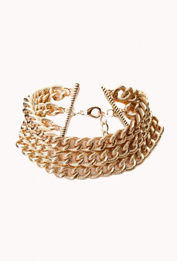 • cintura a catena piccola River Island • collana multigiro Zara • effetto incisione Forever21 • tartarugata Mango